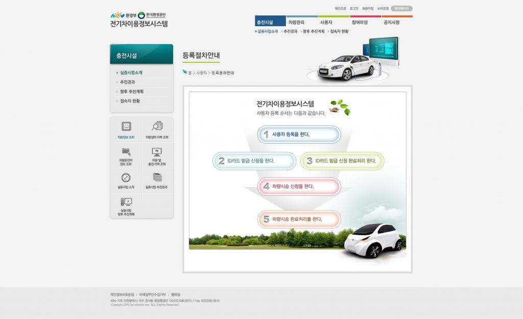 전기차이용정보시스템admin2020-03-23T09:47:30+09:00 Role – 기획 및 화면설계 – UI/UX 디자인 – HTML 마크업 – 데이터베이스 – 프로그래밍 Platform – Linux / Java / Oracle Client – 한국환경공단