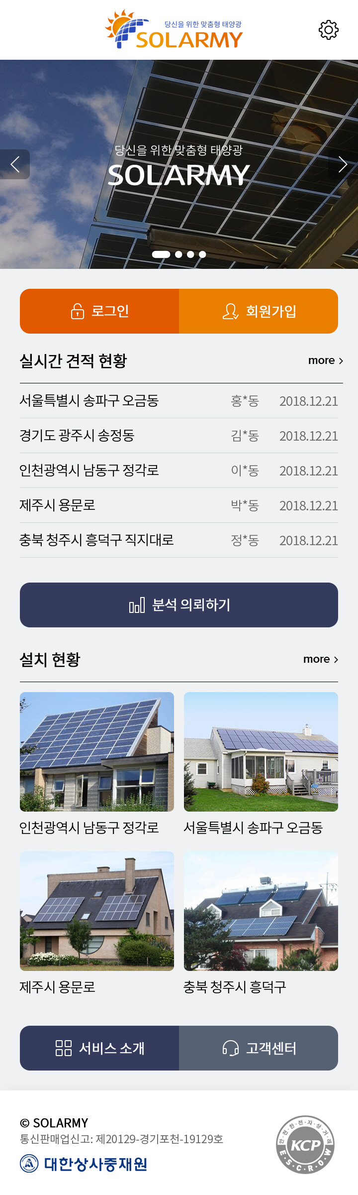 Solarmy Mobile app.admin2020-04-01T11:01:36+09:00 Role – 기획 및 화면설계 – UI/UX 디자인 – HTML 마크업 – 데이터베이스 설계 – 프로그래밍 Platform – Web – Android – iOS Client – Solarmy
