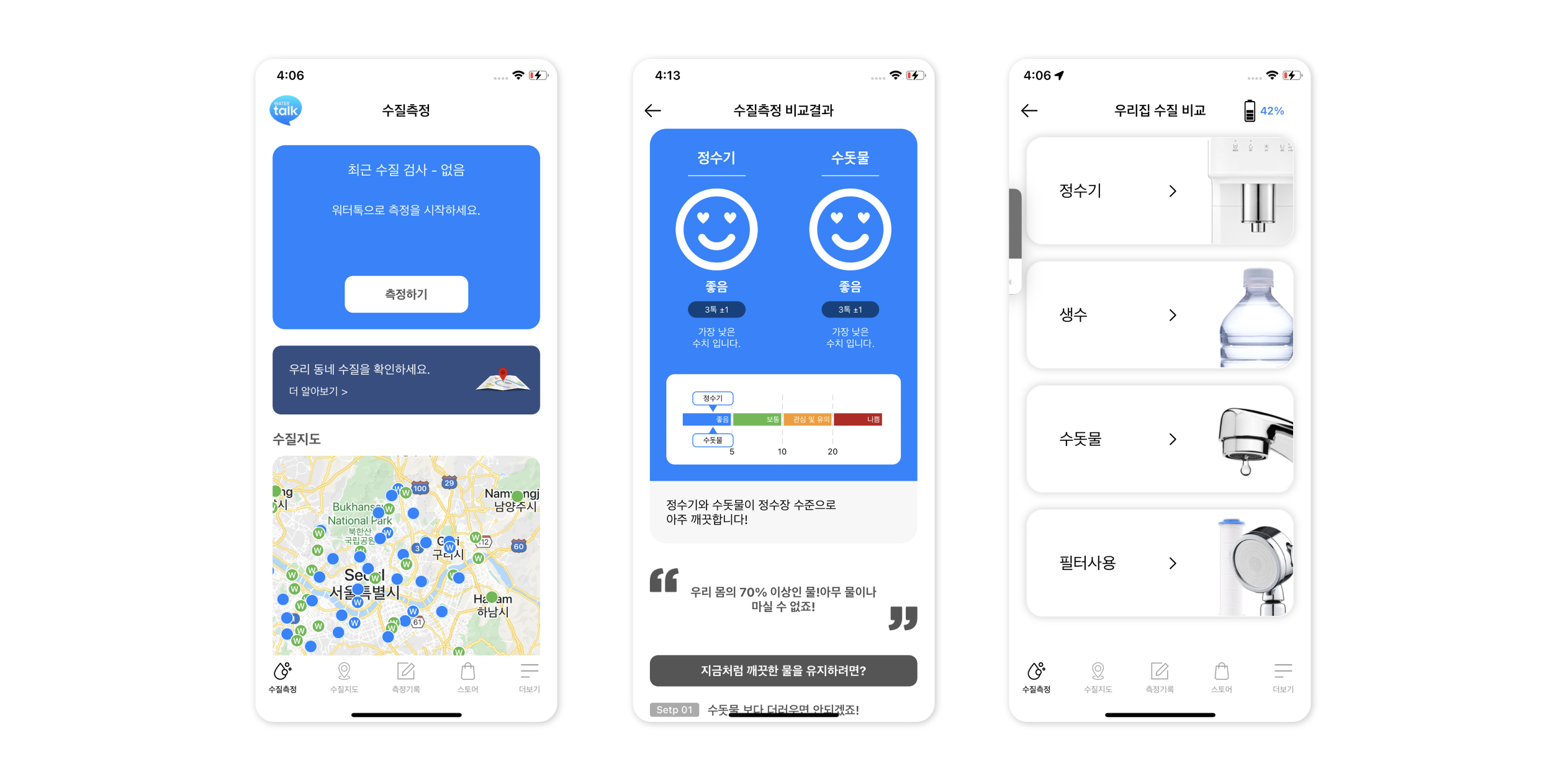 이를 통해 사용자는 다소 생소하고 복잡하게 느껴질 수 있는 수질 검사 과정을 모바일 환경에서 직관적으로 이해하고 활용할 수 있게 되었으며, 기술 중심 제품을 실제 사용자 경험으로 연결하는 기반을 마련했습니다.